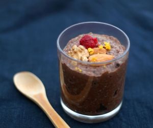 Pro tip: Make a quick chocolate cherry chia pudding with almond milk and avocado for an evening snack, just not too late. You can also leave out the protein powder, if you want.