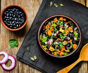 A ½ baked sweet potato topped with black beans, sautéed greens, and avocado is another example. The sweet potato is grounding with complex carbohydrates, the beans add more complex carbs, protein, and fiber, the greens supply minerals and more fiber, and the avocado adds a healthy fat, more fiber, and slows digestion to support hormone balance. Eaten together, this meal stabilizes blood sugar instead of spiking it.