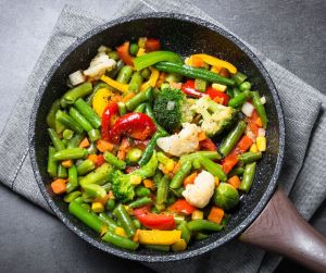A vegetable stir-fry with tofu and greens, a variety of colorful vegetables, and a simple sauce works the same way. The vegetables provide micronutrients and fiber, the tofu adds complex carbs and protein (any bean will work), and the sauce adds fat and flavor. This combination keeps energy steady and digestion supported.