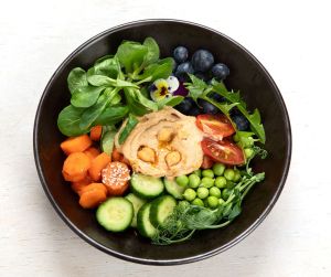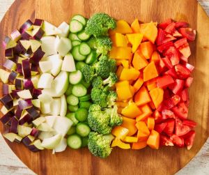 Just notice your plate. Are there any colors present. Can you add some color later today or tomorrow to make up for any missing colors? This doesn’t require exotic foods or complex recipes. Just add color when you can.
