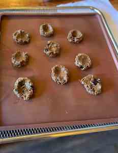 Scoop tablespoon-sized portions of dough and gently flatten into cookie shapes on a parchment-lined plate or dehydrator tray.