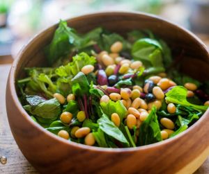 At each meal, look for the rainbow. Aim for a variety of colors and textures. Color adds different phytochemicals and antioxidants. Leafy greens and herbs add minerals and bitter compounds that support digestion and the liver. Legumes, seeds, or roots (sweet potatoes, beets) provide fiber and steady energy, as well as, important nutrients for your microbiome.