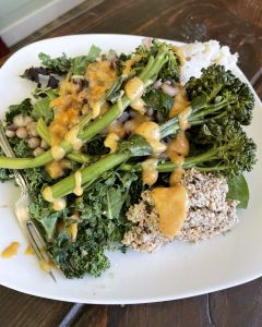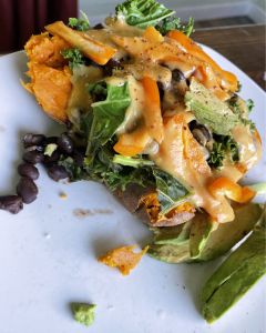 The nutritional yeast gives it that “cheesy” flavor, and the spices round it, out so it doesn’t feel like you’re missing anything.